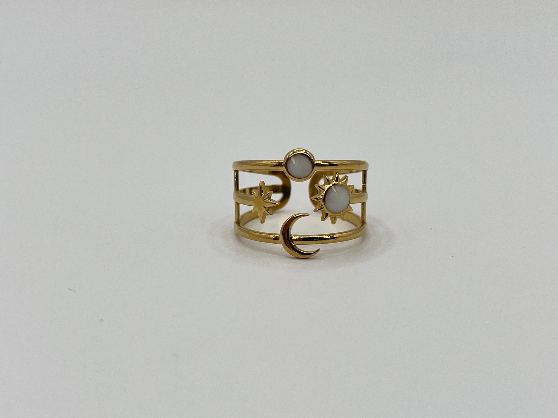 Bague Soleil, Lune & Étoile – Harmonie Céleste