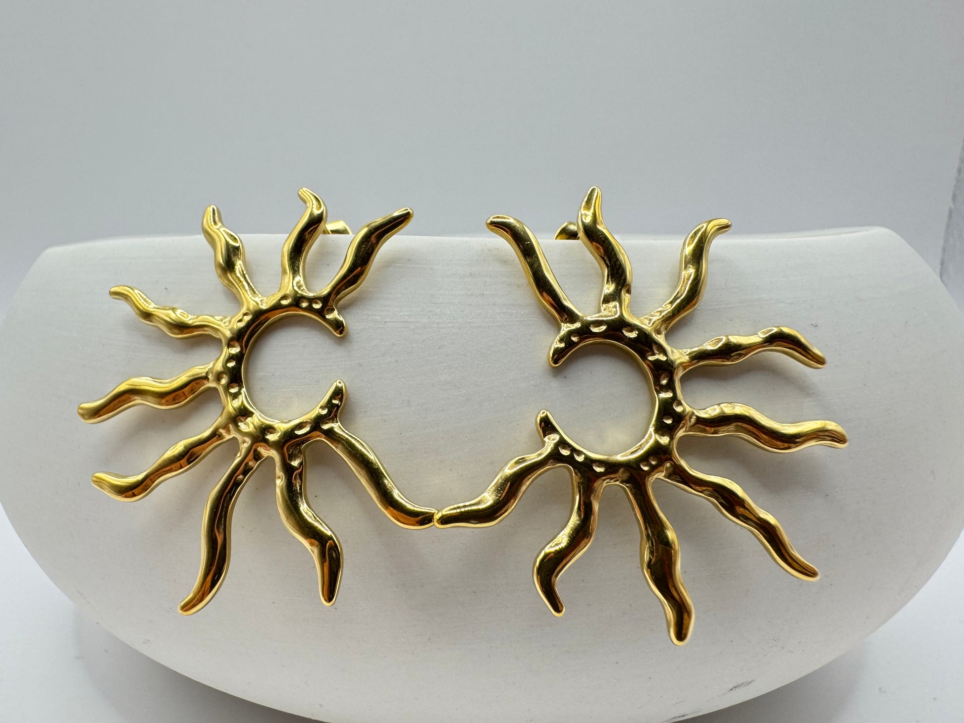 Ajoutez une touche d'élégance à votre tenue avec ces boucles d'oreilles soleil en acier inoxydable doré. Le matériau de qualité assure une durabilité et une brillance durables. Parfait pour toutes les occasions, ces boucles d'oreilles apportent une touche de sophistication à votre look.